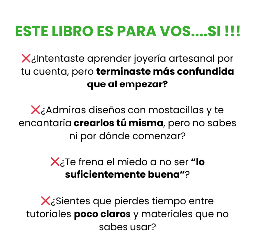 Quiero que disfrutes de este ebook sin miedo ni dudas. Por eso te ofrezco una garantía de satisfacción de 7 días completos. Tendrás tiempo de revisar el contenido, probar las técnicas y crear tus primeras piezas de joyería artesanal.